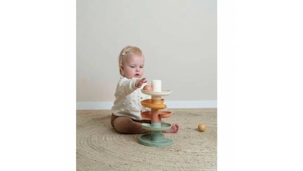 Laat de bal maar rollen! De spiraaltoren van Little Dutch zorgt voor eindeloos veel speelplezier. Deze kleurrijke set bestaat uit 5 subtiel gekleurde delen die jouw kleintje gemakkelijk op elkaar stapelt. Laat de ballen een voor een op de bovenste laag vallen en kijk hoe ze achter elkaar naar beneden rollen en slingeren. De spiraaltoren draagt bij aan de ontwikkeling van de hand-oog coördinatie en leert kleintjes over oorzaak en gevolg, waarmee het zowel leuk als leerzaam spelen is.